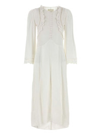 lace-trimmed dress Highlights - White - Crepe fabric - Lace trim - Long sleeves - Button front - Round neck Imported Composition Outer: Viscose 100% Lining: Viscose 100% Washing instructions Read Manufacturer Guidelines