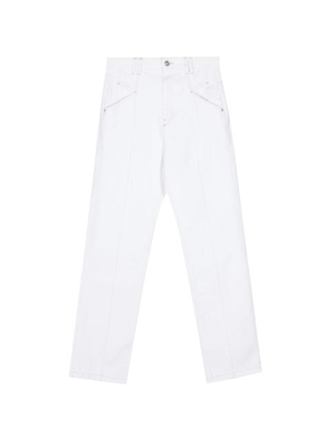 Nadege high-rise jeans Highlights - White - Cotton-hemp blend - Denim - Contrast stitching - High-rise - Belt loops - Two side slit pockets - Exposed-seam detailing - Full-length - Logo patch to the rear - Two rear patch pockets - Straight leg - Boyfriend cut - Logo-embossed buttons - Concealed fly and button fastening Imported Composition Outer: Cotton 80%, Hemp 20% Lining: Polyester 65%, Cotton 35% SIZE & FIT FittingInformation Designed for a straight-leg fit, these jeans allow for a close fit at the waist and an unrestricted and comfortable fit over the leg Particularly long in length; consider your own measurements This piece fits true to size – take your usual size Washing instructions Machine Wash