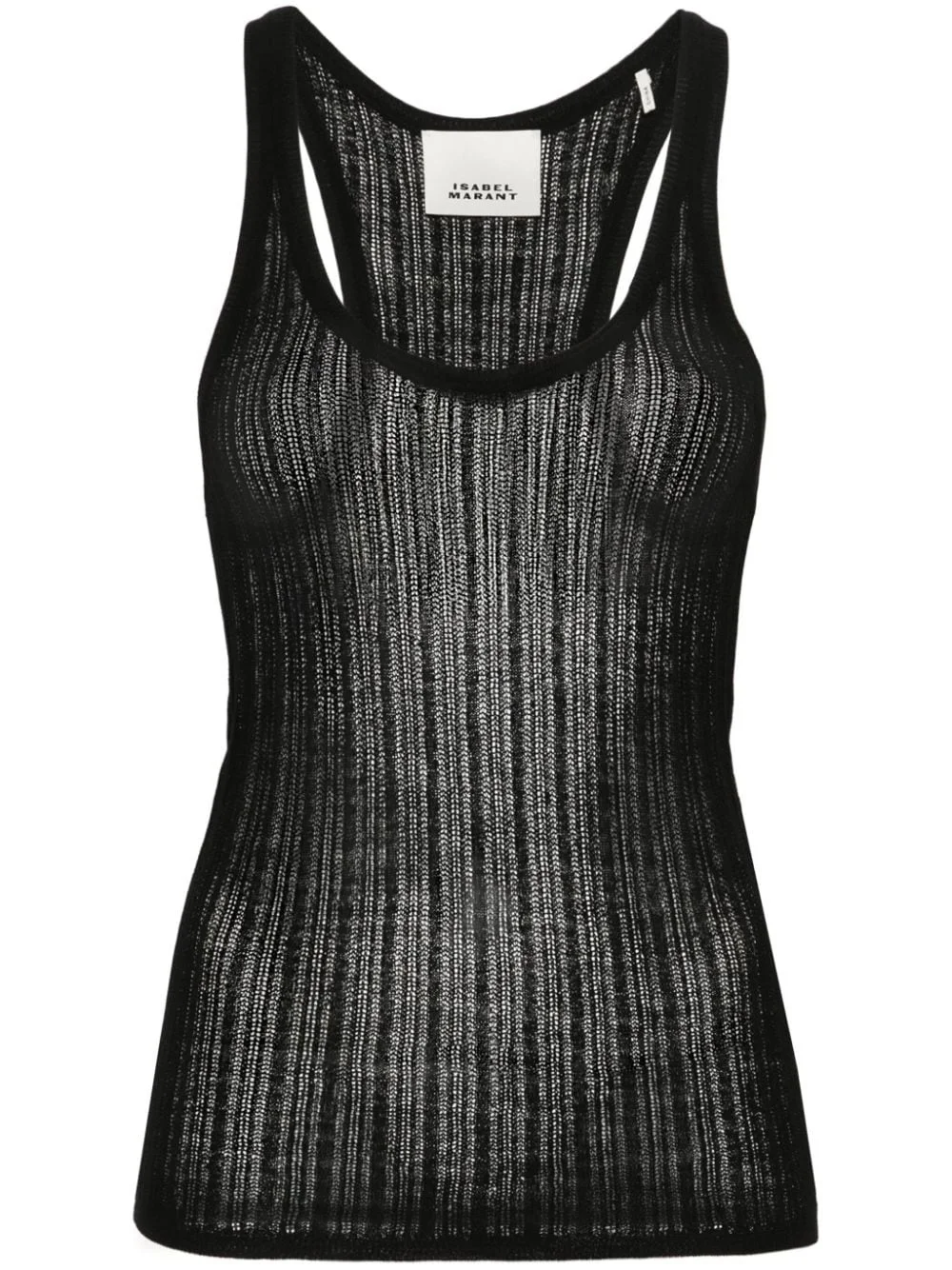 Dorsia open-knit top Highlights - Black - Knitted construction - Open knit - Ribbed knit - Semi-sheer construction - Round neck - Sleeveless - Ribbed hem Imported Composition Viscose 70%, Polyamide 30% SIZE & FIT Model measurements Height 5 ft 10 in(1.78 m) Bust/Chest 32.67 in(83 cm) Hips 35.43 in(90 cm) Waist 23.22 in(59 cm) FittingInformation Designed for a slim fit that sits just away from the body offering a close yet comfortable fit Made with a lightweight knit, this piece offers some stretch This piece fits true to size – take your usual size Measurement LENGTH 23.5 in(59.7 cm) WAIST 27.99 in(71.1 cm) BUST 25 in(63.5 cm)