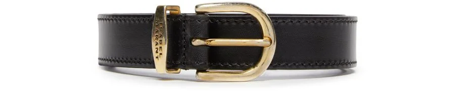 Isabel Marant's Zadd belt is a stylish accessory that adds a touch of sophistication to any outfit. Crafted from genuine leather, it features an engraved logo on the buckle for a subtle designer touch. The gold-tone hardware complements the luxurious feel of the belt, making it a versatile and timeless piece. DESCRIPTION - engraved logo - gold-tone hardware DETAILS AND CARE MATERIAL: 100% leather COLOR: black COUNTRY OF MANUFACTURE: Italy PRODUCT CODE: IMA33M95BCKH611100 The model is 5ft 9in / 1.76m tall.