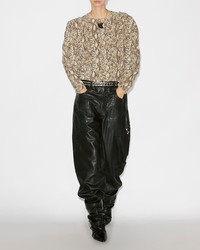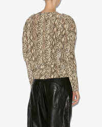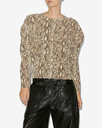 Silk blend blouse with python print Round neckline with drop-shaped opening Done up in front with a metal hook Elaborate shoulder pleats Long gigot sleeves Buttoned cuffs Flowing cut Tightened at the waist Style: HT0012FAC1J05I23NL ZARGA 91% silk, 9% elastane
