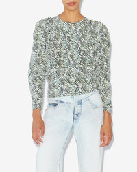 91% silk, 9% elastane Printed silk top with long sleeves Structured shoulders Round neck with drop opening Tightened at the waist Side zip closure Style: HT0012FAB1J04I23EC ZARGA