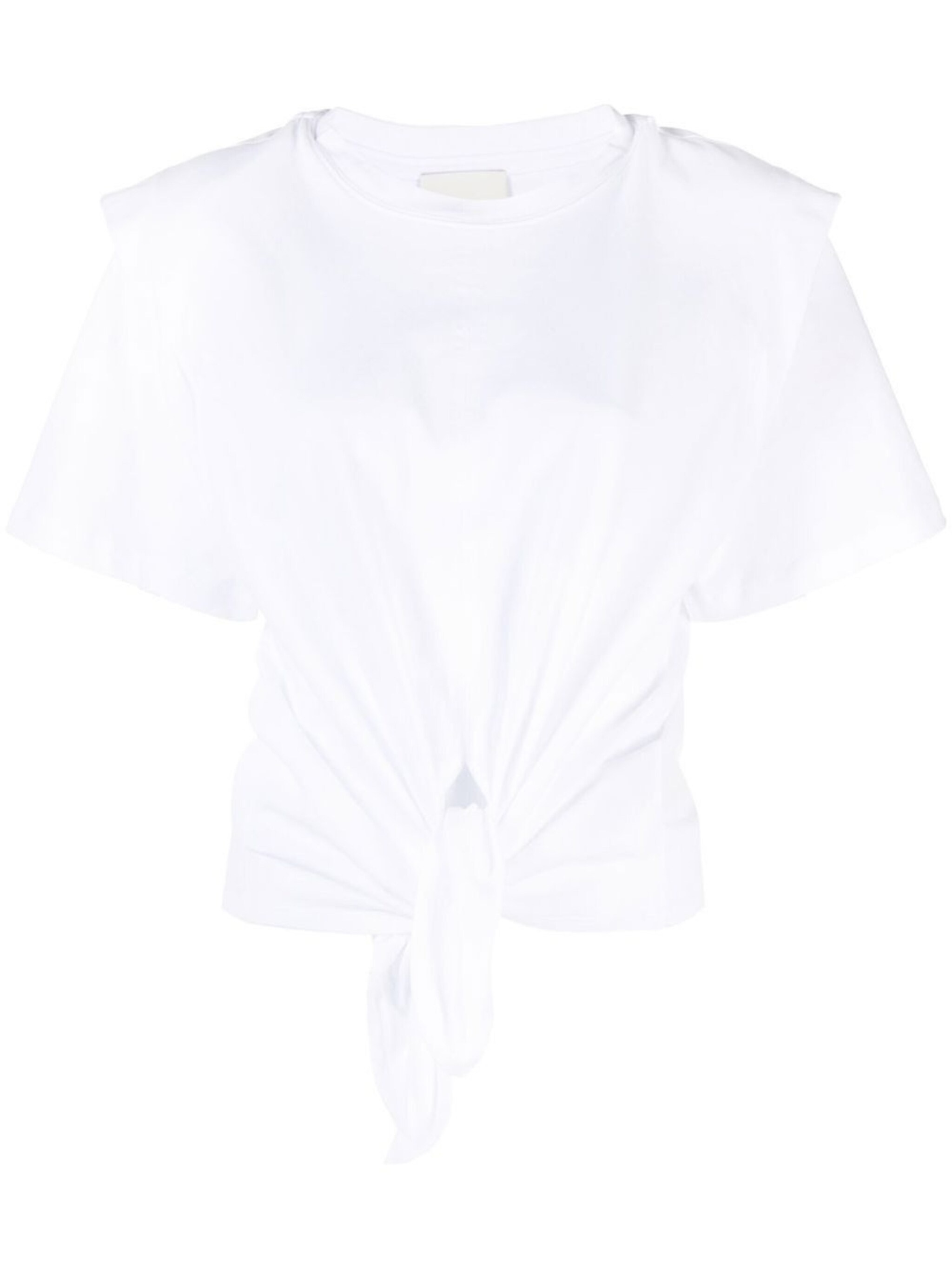 tied-waist short-sleeved T-shirt from ISABEL MARANT featuring white, organic cotton, tied waist, round neck and short sleeves. Conscious: This item is made from at least 50% organic materials. Size & Fit Model Measurements: Bust: 79cm Height: 179cm Hips: 89cm Waist: 61cm