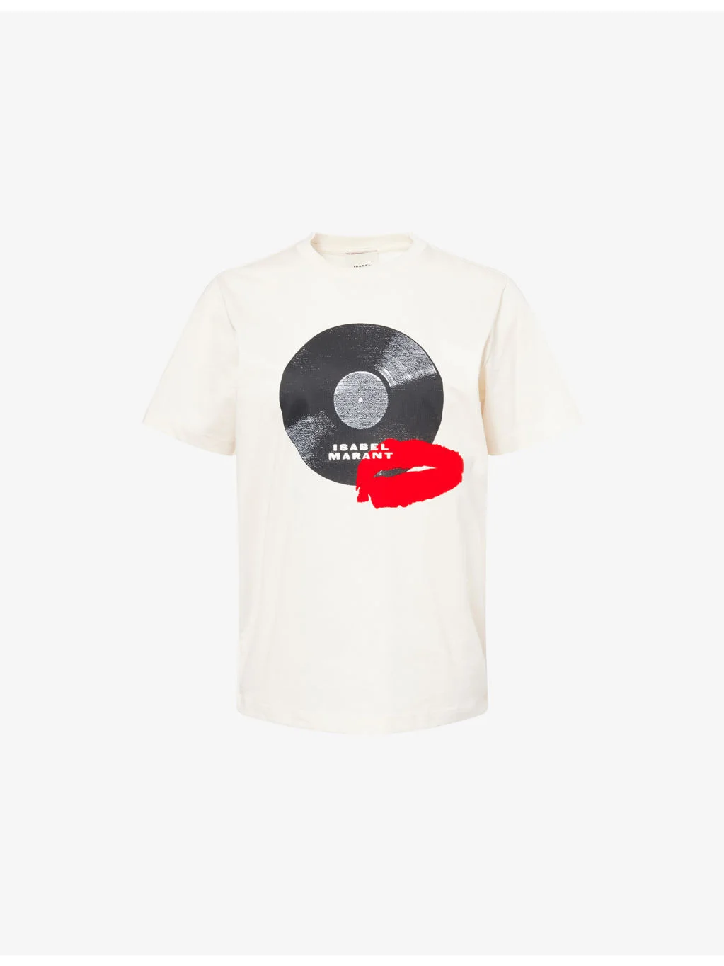 PRODUCT DETAILS - Isabel Marant cotton-jersey T-shirt - 100% cotton - Regular fit, crew neck, ribbed trim at neck, short sleeves, graphic print with flocked design at front - Machine wash cold - True to size - Model is 5ft 10in/1.78m and wears a size small - Lightweight, slight stretch Ref: R04540100