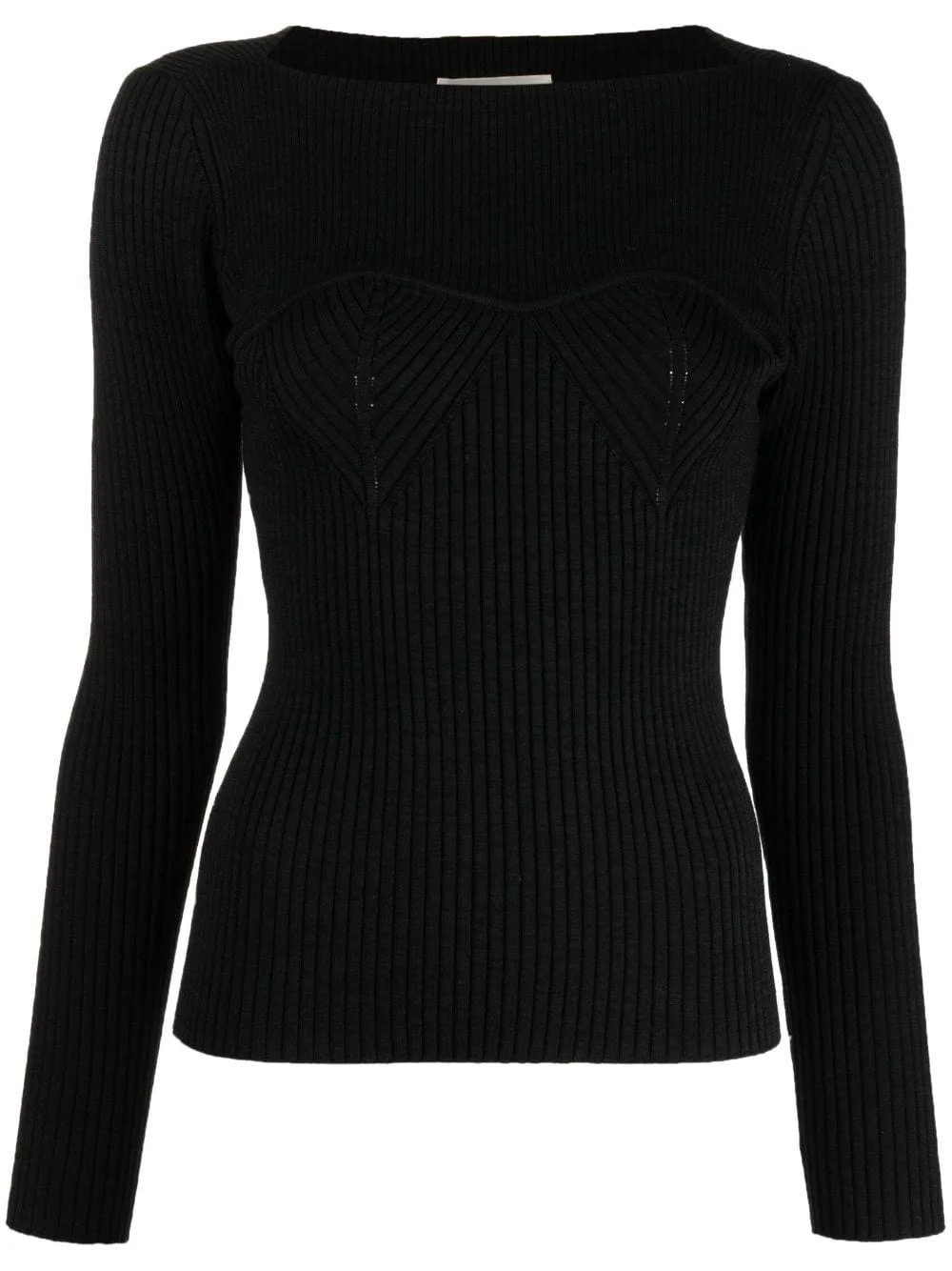 Zilyae slash-neck ribbed top black merino wool blend stretch-design ribbed knit moulded cup slash neck slim cut long sleeves straight hem Imported Composition Body: Merino 61%, Polyester 26% SIZE & FIT Model measurements Height 5 ft 10 in(1.77 m) Bust/Chest 31.49 in(80 cm) Hips 35.43 in(90 cm) Waist 25.19 in(64 cm) FittingInformation Designed for a slim fit that sits just away from the body offering a close yet comfortable fit Made with a midweight knit, this piece offers some stretch This piece fits true to size – take your usual size Washing instructions Hand Wash