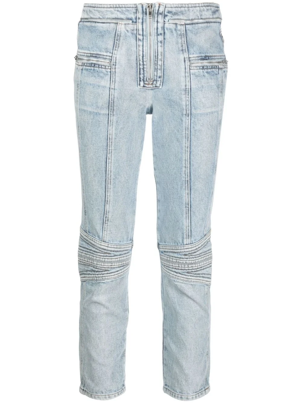 zip-embellished cropped jeans Highlights - Light blue - Cotton - Denim - Zip details - Silver-tone hardware - Mid-rise - Front zip fastening - Skinny cut - Cropped leg Imported Composition Outer: Cotton 100% Lining: Polyester 65%, Cotton 35% SIZE & FIT Model measurements Height 5 ft 10 in(1.79 m) Bust/Chest 31.1 in(79 cm) Hips 35.03 in(89 cm) Waist 24.01 in(61 cm) Measurement FRONT RISE 9.44 in(24 cm) WAIST 28.34 in(72 cm) HIPS 36.22 in(92 cm) FittingInformation Designed for skinny fit cut offering a close fit and minimal movement Cropped in length Sturdy and hard-wearing, this denim piece offers no stretch Washing instructions Machine Wash