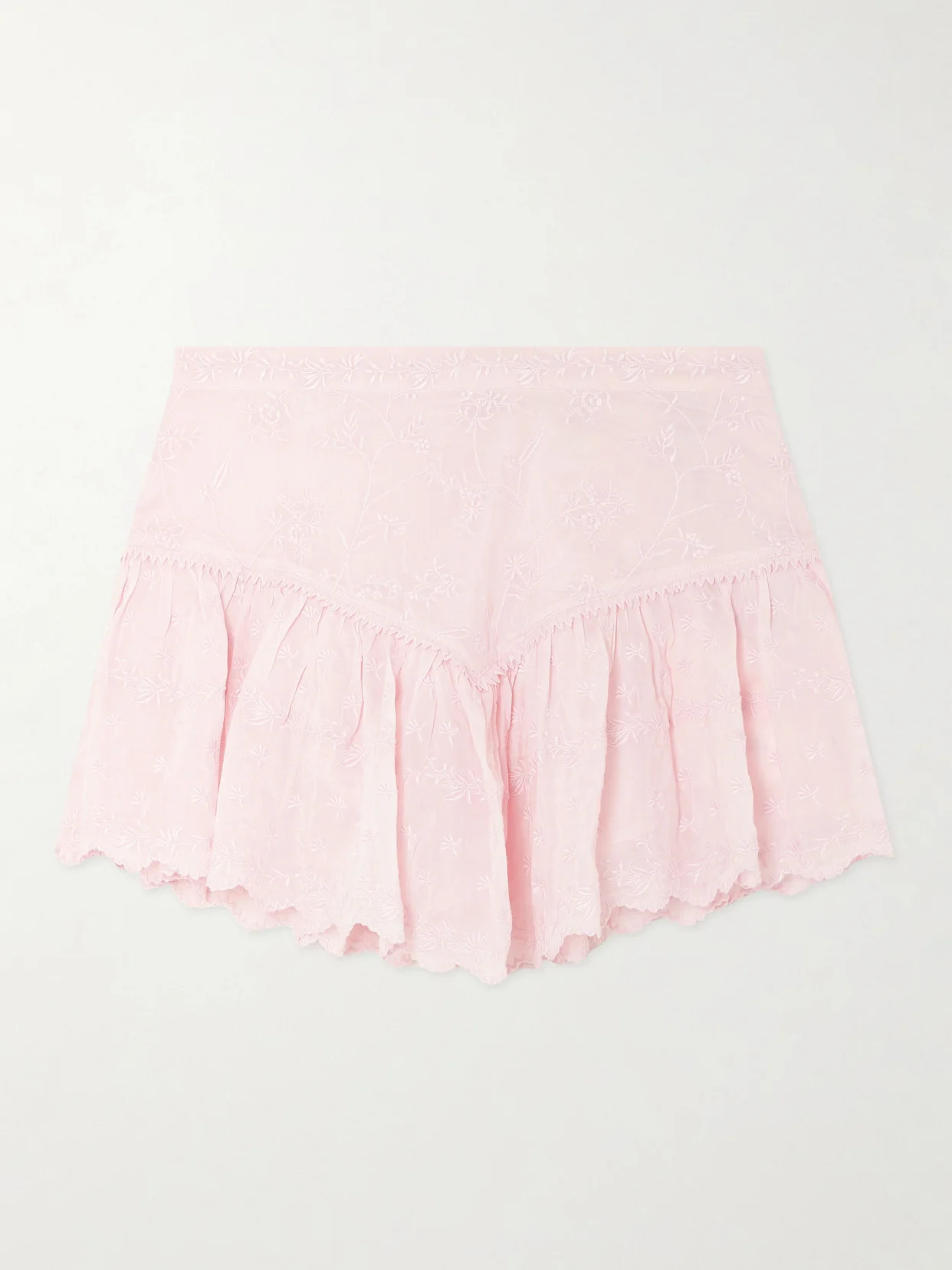 Isabel Marant's 'Zoelia' skirt has a scalloped stepped hemline - the micro length is tempered with an underpinning pair of shorts. It's made from cotton and silk-blend with romantic embroidery across the surface.