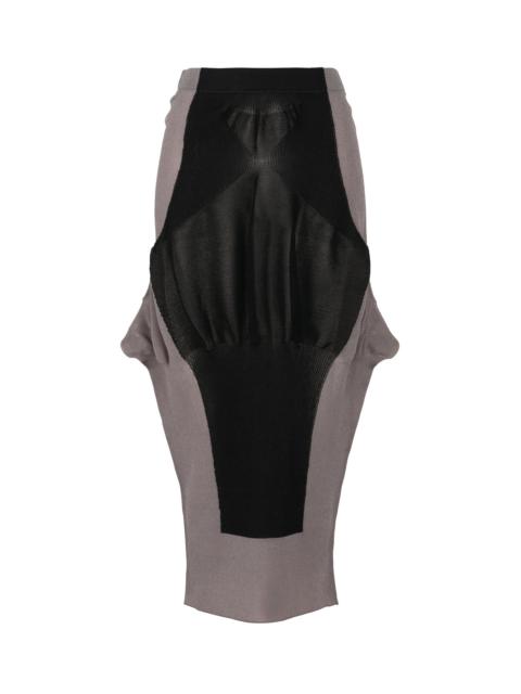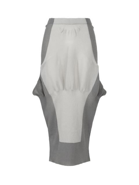 AERATE is a contrast knit series characterized by twisted organic shapes that wrap delicately around the body. This skirt has a fitted, asymmetrical shape and an elastic waist. Product Code: IM46-KG815 Material: 64% Polyester, 36% Triacetate (Knit) Care: Hand wash cold. Only non-chlorine bleach, when needed. Do not tumble dry. Flat dry in the shade. Warm iron. Dryclean any solvent, short cycle.