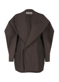 This jacket features a design created by folding a single piece of cloth. We use yarn-dyed fabric that is woven using nylon/polyurethane stretch thread for the warp threads and Japanese paper and nylon for the weft threads. Enjoy the comfort of a Japanese paper blend that is stretchy and feels good against your skin. Product Information Material: Unclassified fiber (Japanese paper) 48% Nylon 43% Polyurethane 9% Country of origin: Japan Front opening:button Pocket (position):Left chest/both sides others:Integrated belt (back)