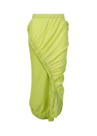 This non-sewn knit skirt uses a double-knitting technique for the organic form inspired by the vitality of plants. It is knit on the front and back by alternating two types of thread made from S-twist cotton and recycled polyester. Due to the characteristics of the S-twist thread, the knit fabric twists in a spiral, and the double-knitted areas form wrinkles, creating a design that resembles plant vines stretching toward the sky. Product Information Material: 62% cotton, 38% polyester Country of origin: Japan Waist specifications:rubber