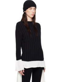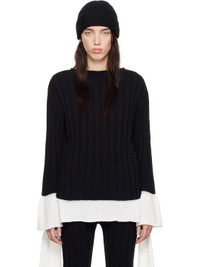 Rib-knit cotton-blend and purl-knit cotton sweater. · Seamless construction · Rolled edge at crewneck · Flared cuffs Supplier color: Black