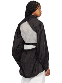 Polyester taffeta shirt. · Band collar · Press-stud closure · Patch pocket at chest · Press-release belt at waist · Modified cap sleeves · Open back Supplier color: Black 100% polyester. Made in Japan 232809F109000