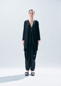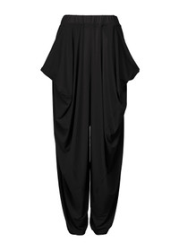 DRAPE JERSEY-46 is a continuation of the DRAPE JERSEY series, featuring three-dimensional draping in comfortable, every-day styles. These pants have a relaxed, comfortable fit with two side pockets and an elastic waist. Product Code: IM46-JF721 Material: 72% Triacetate, 18% Polyester, 10% Polyurethane (Knit) Care: Hand wash cold. Only non-chlorine bleach, when needed. Do not tumble dry. Line dry in the shade. Cool iron. Dryclean, petroleum solvent only, short cycle.
