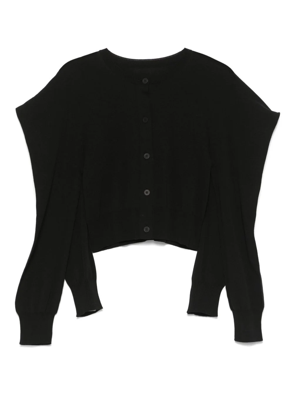 four-sleeved cardigan Highlights - Black - Front button fastening - Crew neck - Long sleeves - Ribbed trim Imported Composition Cotton 55%, Polyester 45%