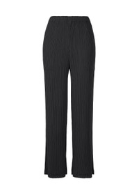 These pleated straight pants are characterized by the appearance of hatching, which looks like a scratched drawing. It is made from recycled polyester with a textured finish created by applying fine pleats twice. The pants' texture is dry to the touch, and they are recommended for daily use. Product Information Material: 100% Polyester Made In Japan Waist specifications:Rubber Pocket (position):Both sides