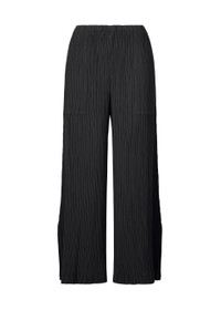 These pleated wide pants feature the appearance of hatching, which looks like a scratched drawing. They are made from polyester with a textured finish that is dry to the touch. The texture is created by applying fine pleats twice. Product Information Material: 100% polyester Country of origin: Japan Waist specifications:rubber Pocket (position):both sides Slit (position):both sides