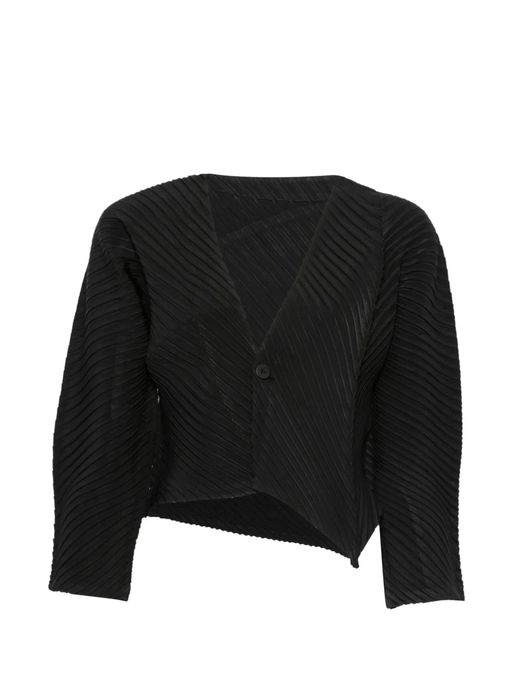 button pleated blouse Highlights - Black - Pleated - V-neck - Button closure - Three-quarter sleeves Imported Composition Polyester 100% Washing instructions Machine Wash