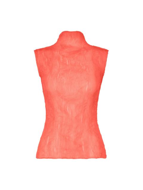 This high-neck sleeveless top is made from recycled polyester fabric that has been pleated and twisted, creating a distinctive sheer effect. The size of this product varies slightly from item to item. Please note this in advance. Product Information Material: 100% polyester Made in Japan Neckline / Collar:High Neck