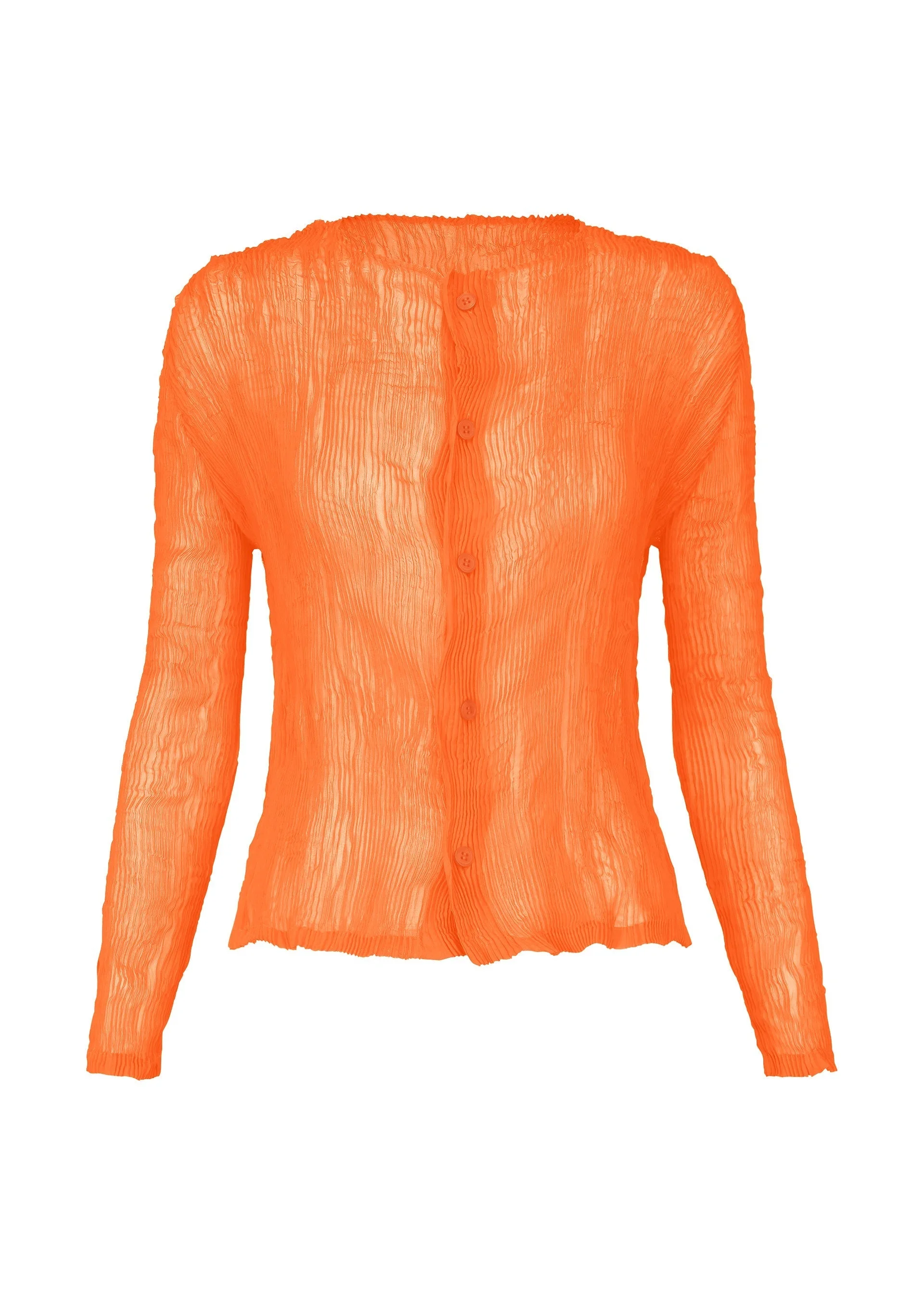 This cardigan is characterized by its sheer look created by pleating and twisting recycled polyester fabric. The size of this product varies slightly from item to item. Please note this in advance. Product Information Material: 100% polyester Made in Japan Neckline / Collar:No collar / crew neck Front opening:button