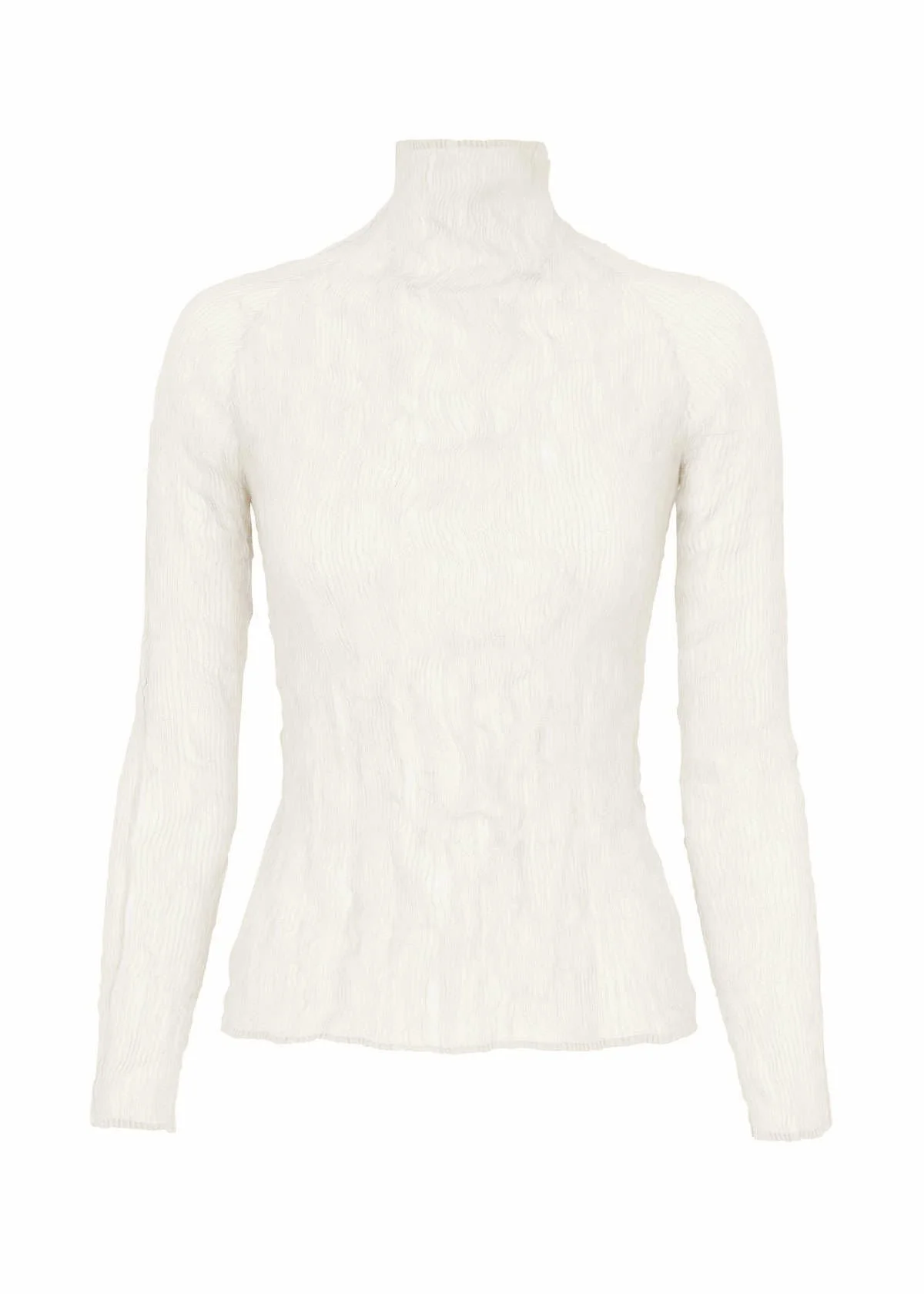 This high-neck, long-sleeved top is characterized by its sheerness and is made using recycled polyester fabric that is pleated and twisted. The size of this product varies slightly from item to item. Please note this in advance. Product Information Material: 100% polyester Country of origin: Japan neckline/collar:high neck