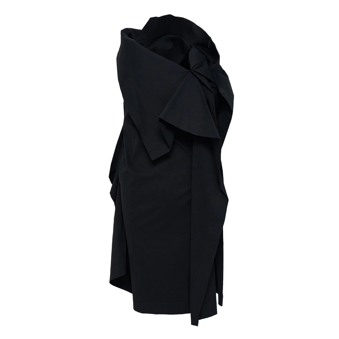 600069474BLK002 / IM58FT036/00/15/SEP - Architectural bow detail at shoulder - Asymmetrical draping construction - Technical pleated fabric - Sleeveless design - Structured sculptural silhouette - Contemporary minimalist aesthetic ISSEY MIYAKE Collapsing Sculpture Tunic delivers avant-garde Japanese design with architectural draping and innovative textile manipulation. Crafted from technical pleated fabric in sophisticated black, featuring the brand's signature sculptural silhouette and structured bow detail. The architectural construction and contemporary minimalism create a statement piece that embodies ISSEY MIYAKE's innovative design philosophy.