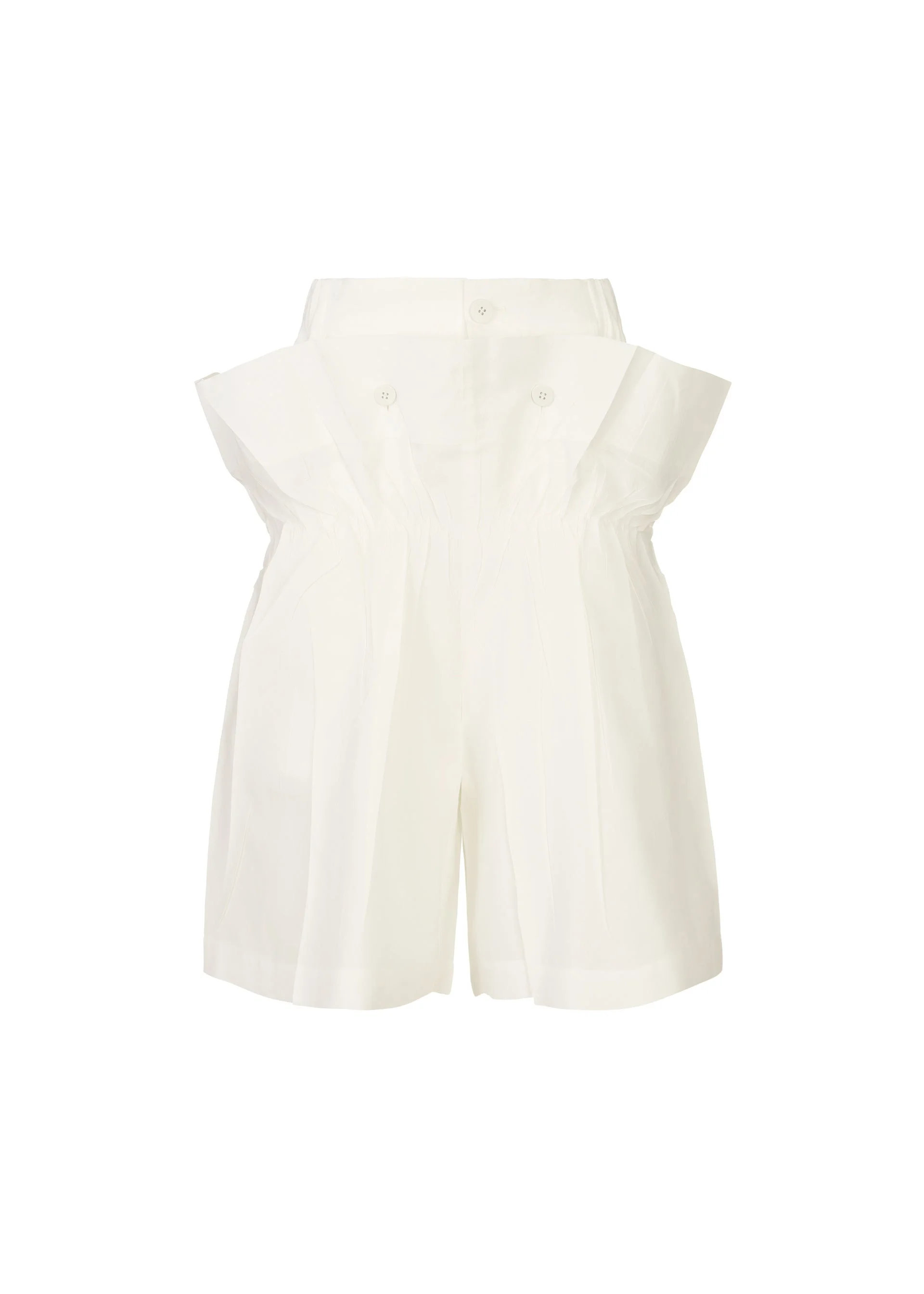 These shorts have a unique texture with wrinkles like paper. The sleek fabric that does not cling to the skin is made from a combination of polyester and cotton voile, with polyurethane threads that are woven in jacquard in some areas and shrunk. Further pressing the fabric to flatten it creates unpredictable wrinkles. Due to the manufacturing process, the texture and size of this product vary from item to item. Please note this in advance.