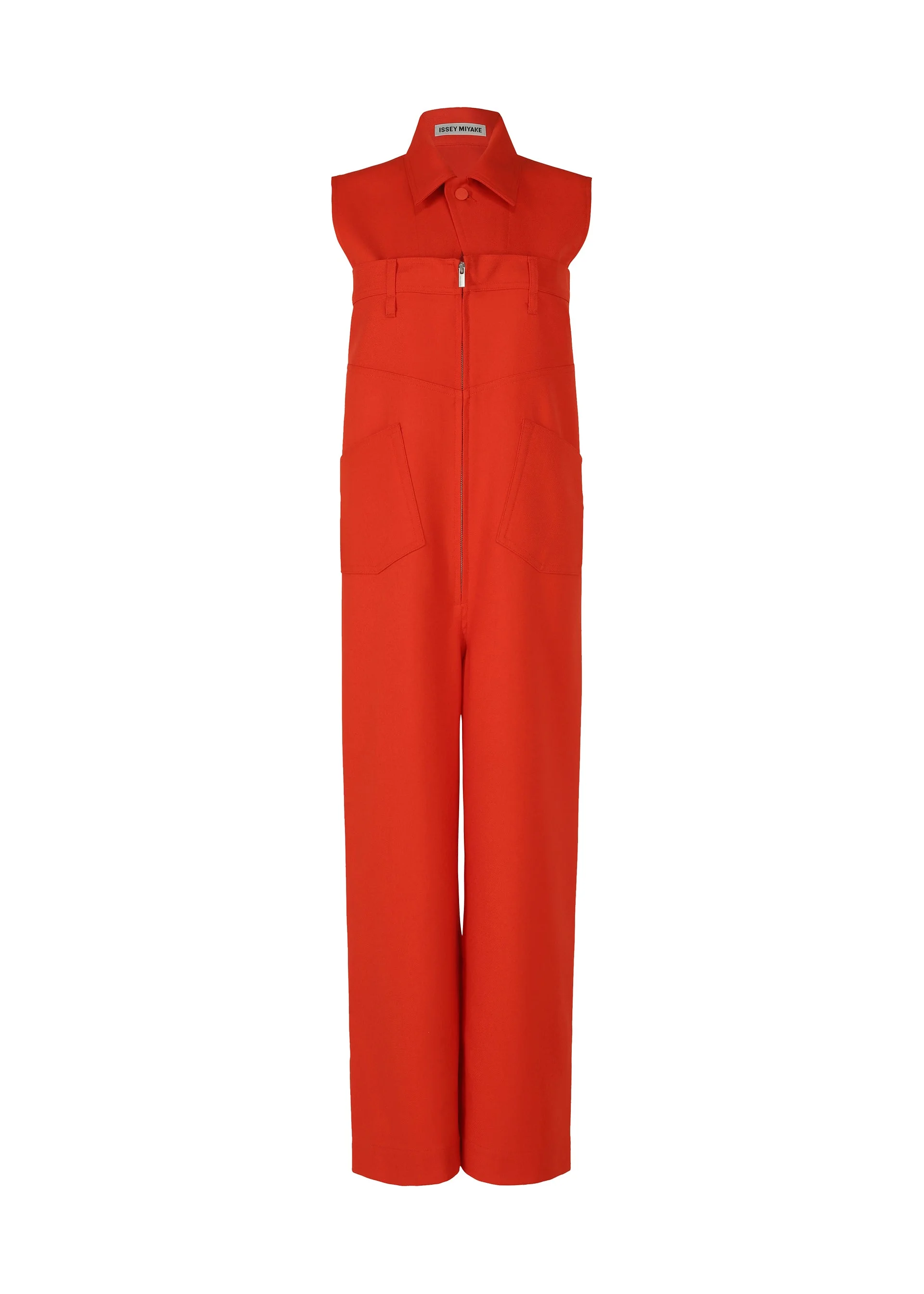 This jumpsuit features a unique design that creates an off-kilter feel through the placement of details. The design seems familiar yet entirely new with detailing that makes the front and back of the jeans appear as if they have been reversed, shifted pocket locations, and altered placement of the waist design details. The material uses voluminous wool serge fabric that undergoes special processing to give it a moderate stiffness and firm feel. Product Information Material: 100% wool Made in Japan Neckline/ Collar: :Regular collar Front opening: :Button/ zip up Waist Specifications::Belt loops Pockets (location):Front and back