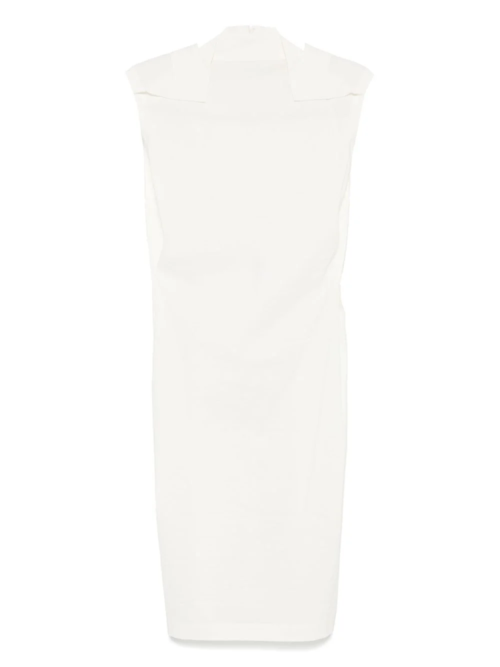 draped dress Highlights - Light beige - Concealed rear zip fastening - Mock neck - Cap sleeves - Knee-length Imported Composition Paper 48%, Nylon 43%, Polyurethane 9%