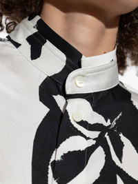 floral-print shirt Highlights - Black - Front button fastening - High neck - Long sleeves - Straight hem Imported Composition Polyester 100%