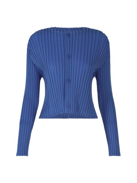 This cardigan is characterized by its three-dimensional, dynamic form created through adding folds and pleating. Bold folds and machine pleating give the folds structure and create a fresh silhouette. Made from tightly twisted polyester, the cardigan has a crisp texture with a moderate sheerness for a light feel. Its elegant design also makes it suitable for special occasions. The size of this product varies slightly from item to item. Please note this in advance. Product Information Material: 100% polyester Made in Japan Neckline / Collar:No collar / crew neck Front opening:button