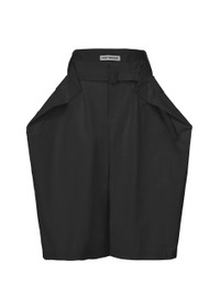 These shorts are characterized by their striking, three-dimensional silhouette with partial folds reminiscent of boxes and origami. By reducing the density of the warp threads to decrease the weight, the fabric was made lighter and thinner while retaining its stretchiness. Rayon/silk threads were also alternately woven with Japanese Washi paper to create the supple, flowy feel. Despite their impressive silhouette, the shorts are very light and moderately hug the body. The buckle is made using vulcanized fiber, whose raw material is paper. Due to the nature of the material, the texture of this product's buckle differs from item to item. Please note this in advance. Product Information Material: Unclassified fiber (Japanese paper) 37% Rayon 36% Nylon 19% Polyurethane 6% Silk 2% Country of origin: Japan Waist specifications:Button/hook/integrated belt Front opening specification:zip fly Pocket (position):Both front and rear sides