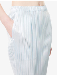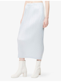 PRODUCT DETAILS - Issey Miyake knitted midi skirt - 100% polyester - Slim fit, elasticated waistband, two side slip pockets, all-over pleated design, metallic sheen, midi length - Machine wash at 30°C - Made in Japan - Size 1: length 33.5in / 85cm - Model is 5ft 10in/1.78m and wears a size 1 - Lightweight, slight stretch - This garment’s sizing is based on height and doesn’t conform to standard sizes. Please refer to the size guide for your desired length. Ref: R04556785