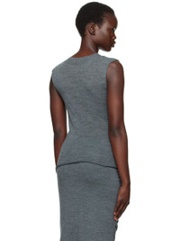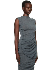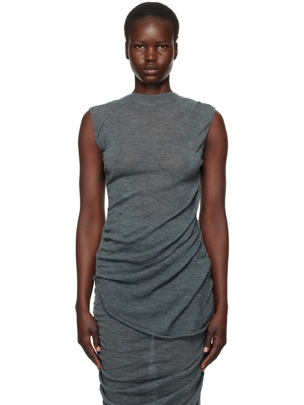 Knit wool top. Draping and gathering throughout. · Rib-knit crewneck · Rolled edge at hem and armscyes · Asymmetrical hem Supplier color: Drew gray 100% wool. Made in Japan 251809F111002