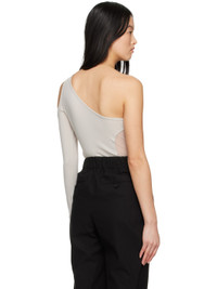 Stretch nylon jersey T-shirt. · Single-shoulder construction · Asymmetric straight neck · Cutout at shoulder · Polyester mesh panel at side-seams Supplier color: Light gray Body 1: 100% polyester. Body 2: 90% nylon, 10% polyurethane. Made in Japan 231809F110005