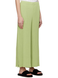 Wide-leg garment-pleated recycled polyester tricot trousers. · Elasticized waistband · Two-pocket styling · Vented cuffs Supplier color: Moegi green 100% recycled polyester. Made in Japan 252809F087004