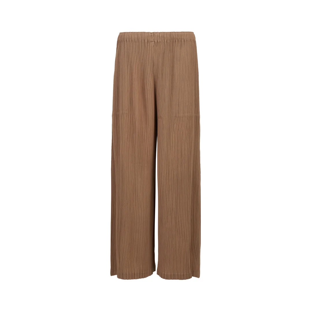 300047085BRN-02 / S5IM56FF687/00/49/APR - Signature micro-pleated construction - Elasticated waistband - Wide-leg silhouette - Lightweight pleated fabric - Machine washable - Relaxed fit ISSEY MIYAKE Hatching Bottoms Pants deliver innovative pleated construction with signature architectural design. Crafted from premium pleated fabric in warm camel brown, featuring the brand's renowned micro-pleating technique for comfort and movement. The wide-leg silhouette and technical pleating create a distinctive contemporary statement piece.