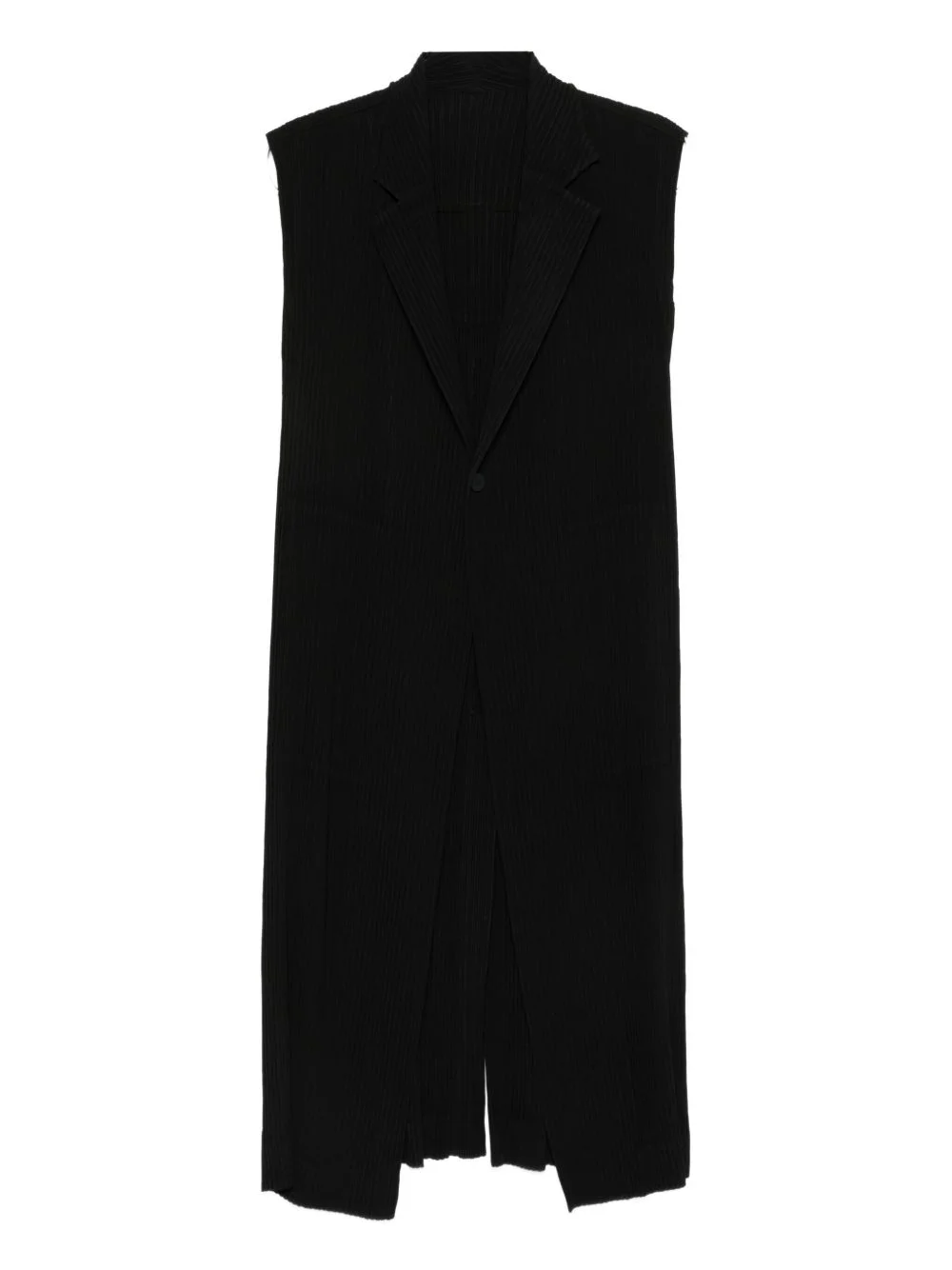 Hatching sleeveless coat Highlights - Black - Plisse texture - Lapel collar - Sleeveless - Front button fastening Imported Composition Polyester 100% SIZE & FIT Model measurements Height 5 ft 9 in(1.76 m) Bust/Chest 31.88 in(81 cm) Hips 35.43 in(90 cm) Waist 24.8 in(63 cm) Washing instructions Machine Wash