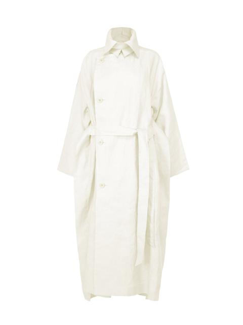 This long coat is made using 100% hemp, which has been utilized as a raw material for various everyday items like paper and clothing since long ago. Dyed and processed in Shiga Prefecture, a hemp production area, this coat is finished to have an entirely new texture while leveraging the unique properties of hemp. Enjoy the distinctive springiness and sheer texture created through the special coating process. Product Information Material: 100% plant fiber (hemp) Country of origin: Japan Front opening:button Pocket (position):both sides Slit (position):both sides others:integrated belt