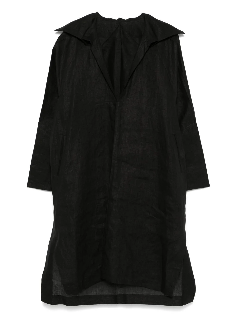 Hempen shirt dress Highlights - Black - Short side slits - Two front jetted pockets - V-neck Imported Composition Hemp 100% SIZE & FIT Model measurements Height 5 ft 10 in(1.78 m) Bust/Chest 31.49 in(80 cm) Hips 37 in(94 cm) Waist 23.62 in(60 cm) FittingInformation Designed to be unstructured, offering a loose fit throughout Made from a midweight non-stretch fabric