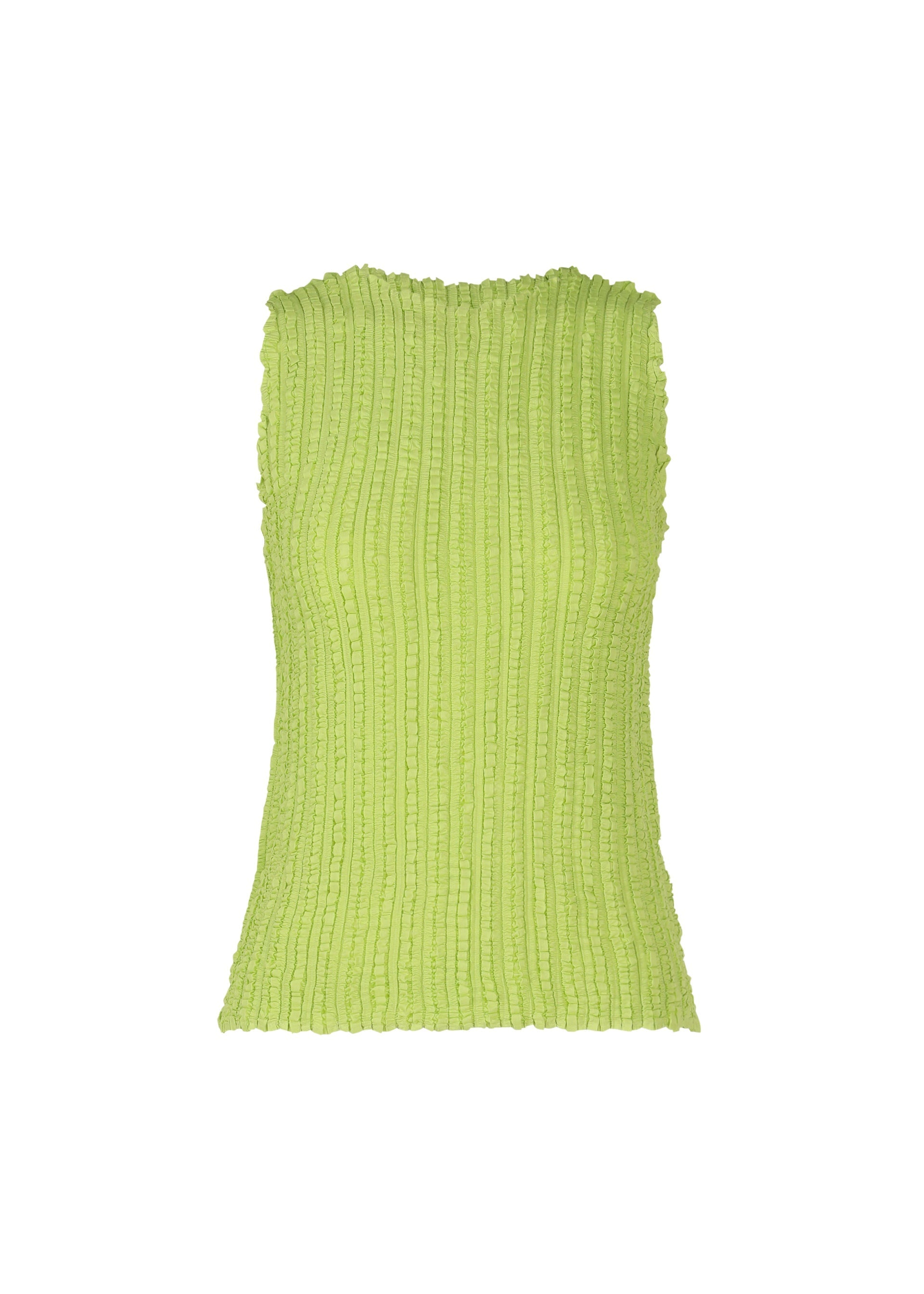 This round-neck, sleeveless top gives a fresh impression with its random pleat lines. After adding box pleats, a Majolica pleating process was applied, resulting in new pleat lines unlike any other. Despite being 100% polyester, the base fabric has a cotton-like texture and gives a different impression from the standard pleated tops. The size of this product varies slightly from item to item. Please note this in advance. Product Information Material: 100% polyester Country of origin: Philippines neckline/collar:round neck