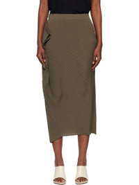 Garment-pleated recycled crepe de chine midi skirt. · Elasticized waistband · Sculptural draping at side seam Supplier color: Khaki 100% recycled polyester. Made in Japan 252809F092006