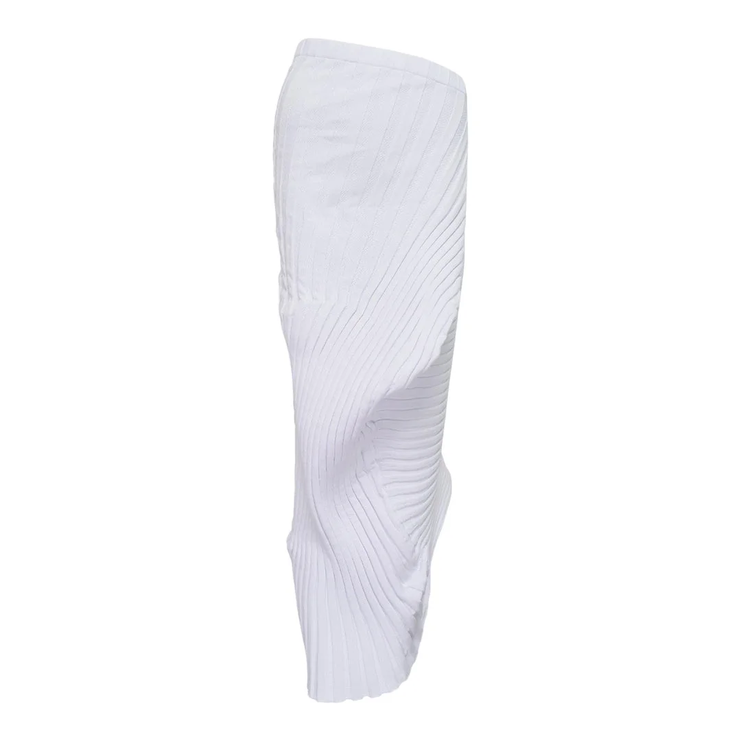 600069502WHT002 / IM58KG275/00/01/JUL - Signature PLEATS PLEASE pleating technology - Asymmetrical wrap design - Elasticated waistband - Mid-length silhouette - Technical pleated polyester construction - Machine washable and wrinkle-resistant - One size fits multiple body types The ISSEY MIYAKE Knit As It Is Skirt delivers innovative Japanese design with sculptural pleating technology. Crafted from technical pleated fabric in pristine white, featuring the brand's signature wrapping silhouette that creates dynamic movement and form. The asymmetrical draping and engineered pleats showcase MIYAKE's revolutionary approach to garment construction.