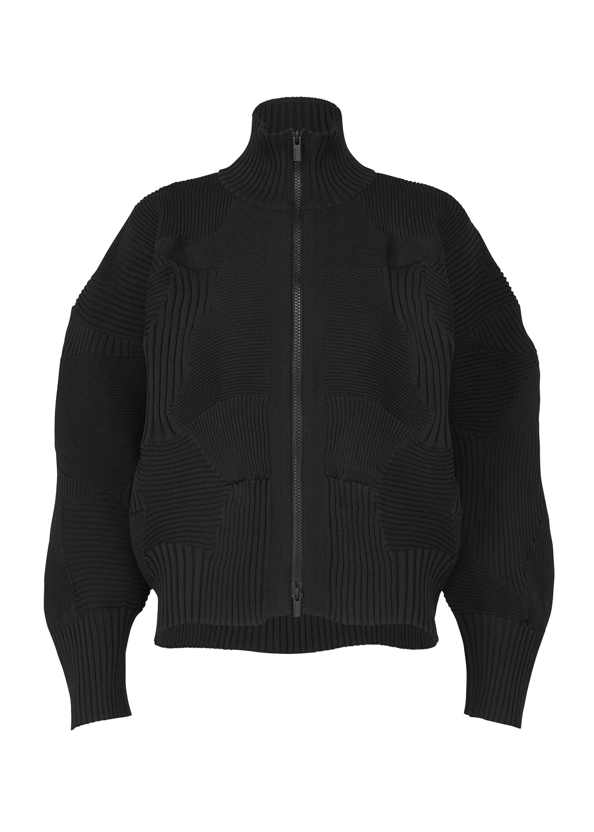 A textural ribbed knit series, KONE KONE features organic stretched silhouettes that create a unique patchwork effect. This jacket has a comfortable fit, high neck, and double zip closure. Product Code: IM46-KD877 Material: 100% Polyester (Knit) Care: Hand wash cold. Only non-chlorine bleach, when needed. Do not tumble dry. Flat dry in the shade. Warm iron. Dryclean any solvent, short cycle.