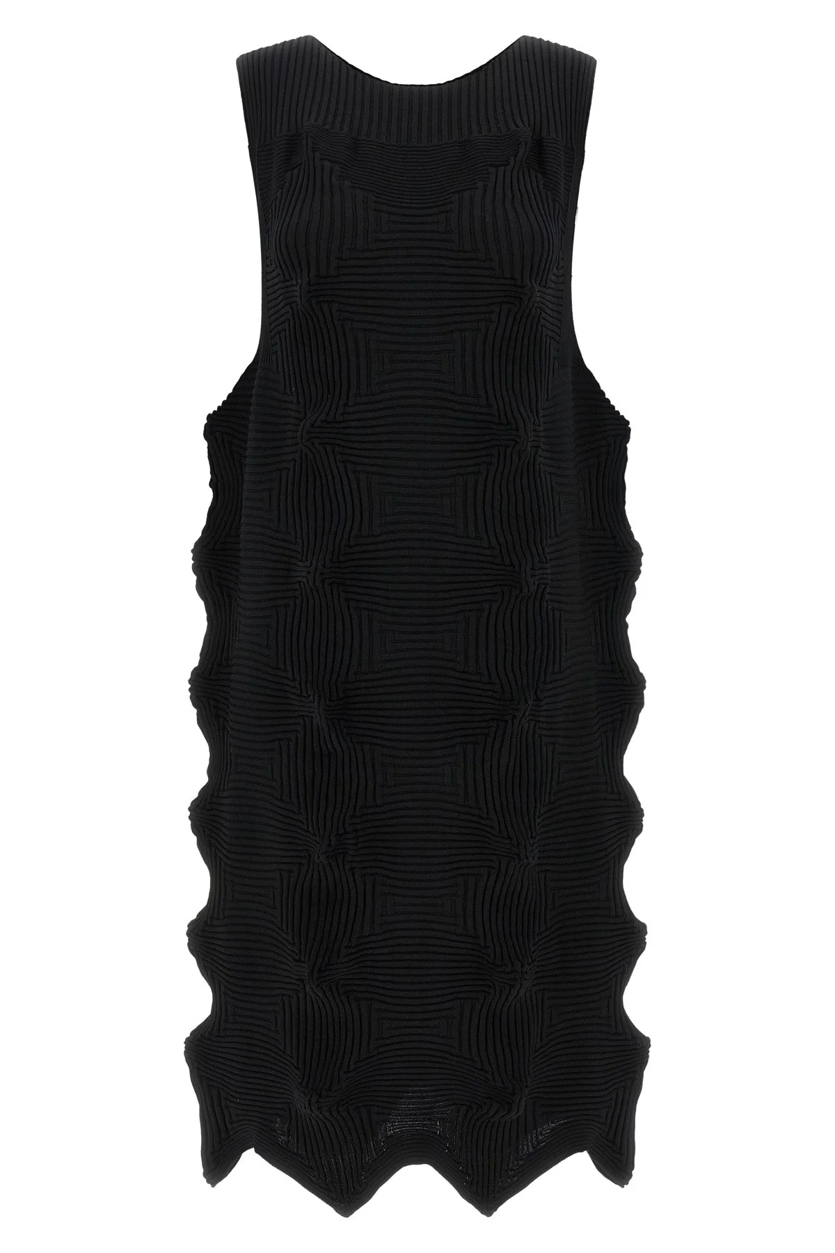 cod. IM66KH78415 Linkage' crewneck sleeveless knit dress with elastic ribbed weave structure. Color: Black Size & Fit: True to size fit Composition: 75% polyester, 25% cotton Made in: Japan