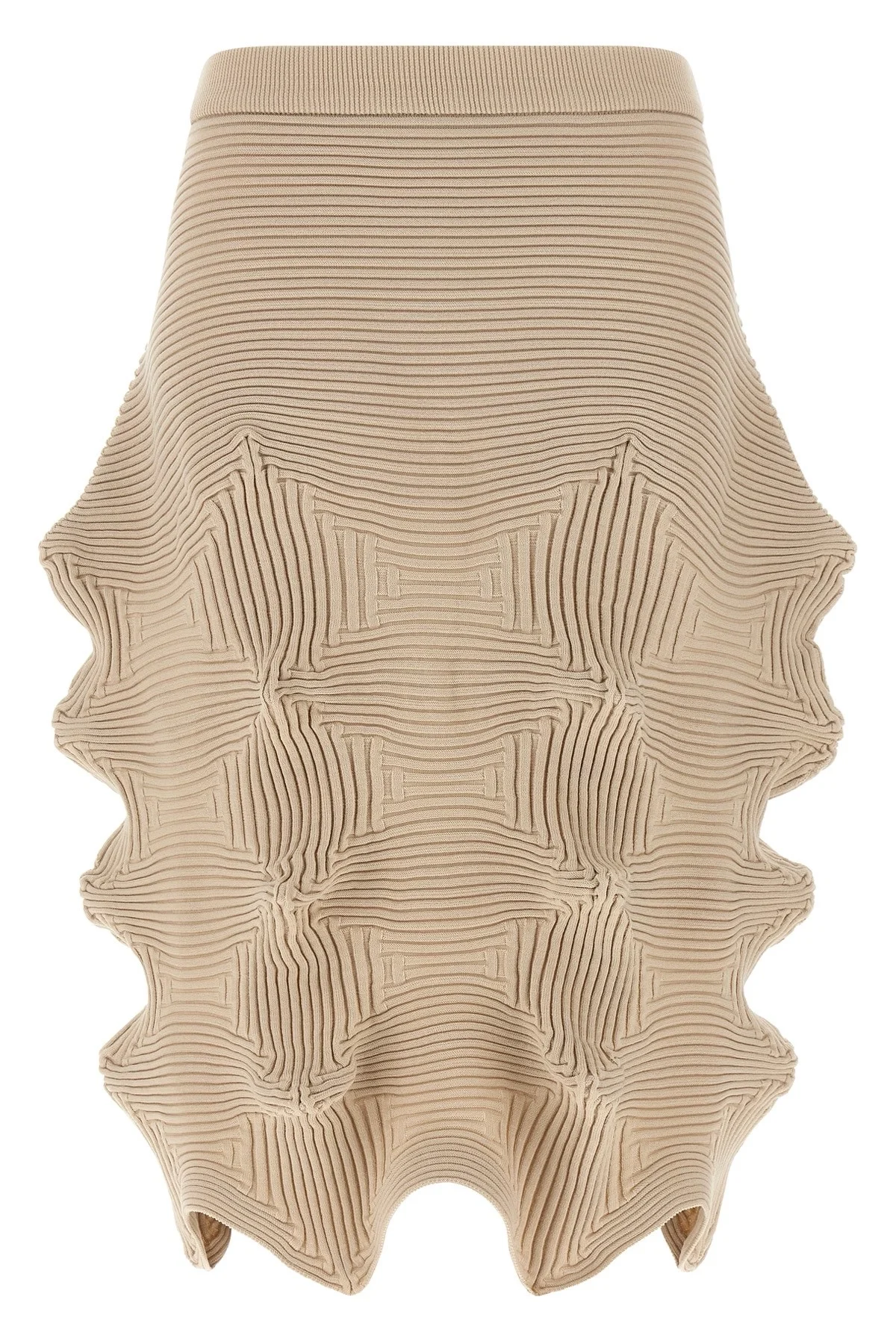 cod. IM66KG78348 'Linkage' knitted skirt with ribbed elastic weave structure, wide model with elastic waistband. Color: Beige Size & Fit: True to size fit Composition: 75% polyester, 25% cotton Made in: Japan