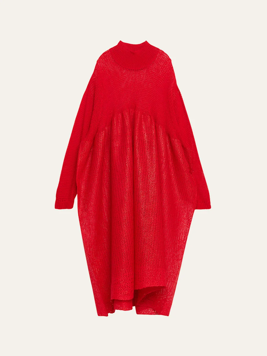 Redefining knitwear with architectural flair, this Issey Miyake dress is impeccably made of sculptural wool-alpaca open knit that transforms under heat-pressing into a crisp, subtly lustrous silhouette Mock neckline Long sleeves; ribbed cuffs Drop shoulders Empire waist Fit-and-flare silhouette Full length Slipover style Wool/alpaca/polyester Made in Japan Online Inquiries: BGS21_BA8ZJ| Store Inquiries: #5056489