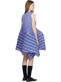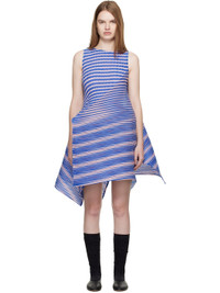 Garment-pleated and semi-sheer plain-woven minidress. · Stripes throughout · Round neck · Sculptural asymmetric hem Supplier color: Blue hued 100% polyester. Made in Japan 261809F052000