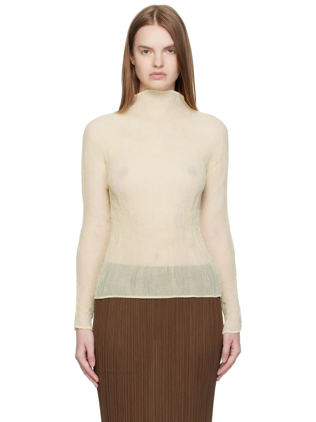 Sheer garment-pleated recycled polyester chiffon top. · Turtleneck · Raglan sleeves Supplier color: Kouzo ivory 100% polyester. Made in Japan 252809F099006