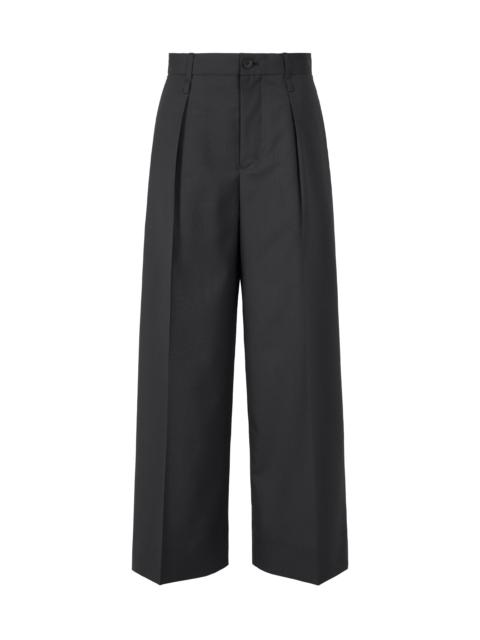 These pants have a unique design that challenges the notion of the “interior” and “exterior” of a garment, as either side can be worn as the exterior. The lining, which is usually a supporting element, is designed in the form of shorts, subtly marked with small ISSEY MIYAKE logos. When worn inside out, it appears as though the shorts are layered on top. While these may seem like classic pants at first glance, this playful piece can be styled in many ways. Product Information Material: 50% Wool, 40% Polyester, 10% Triacetate Other Fabric: 53% Polyester, 47% Cotton Made In Japan Waist specifications:Buttons / belt loops Front opening specification:Zip fly Pocket (position):Front and back, both sides