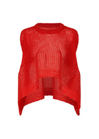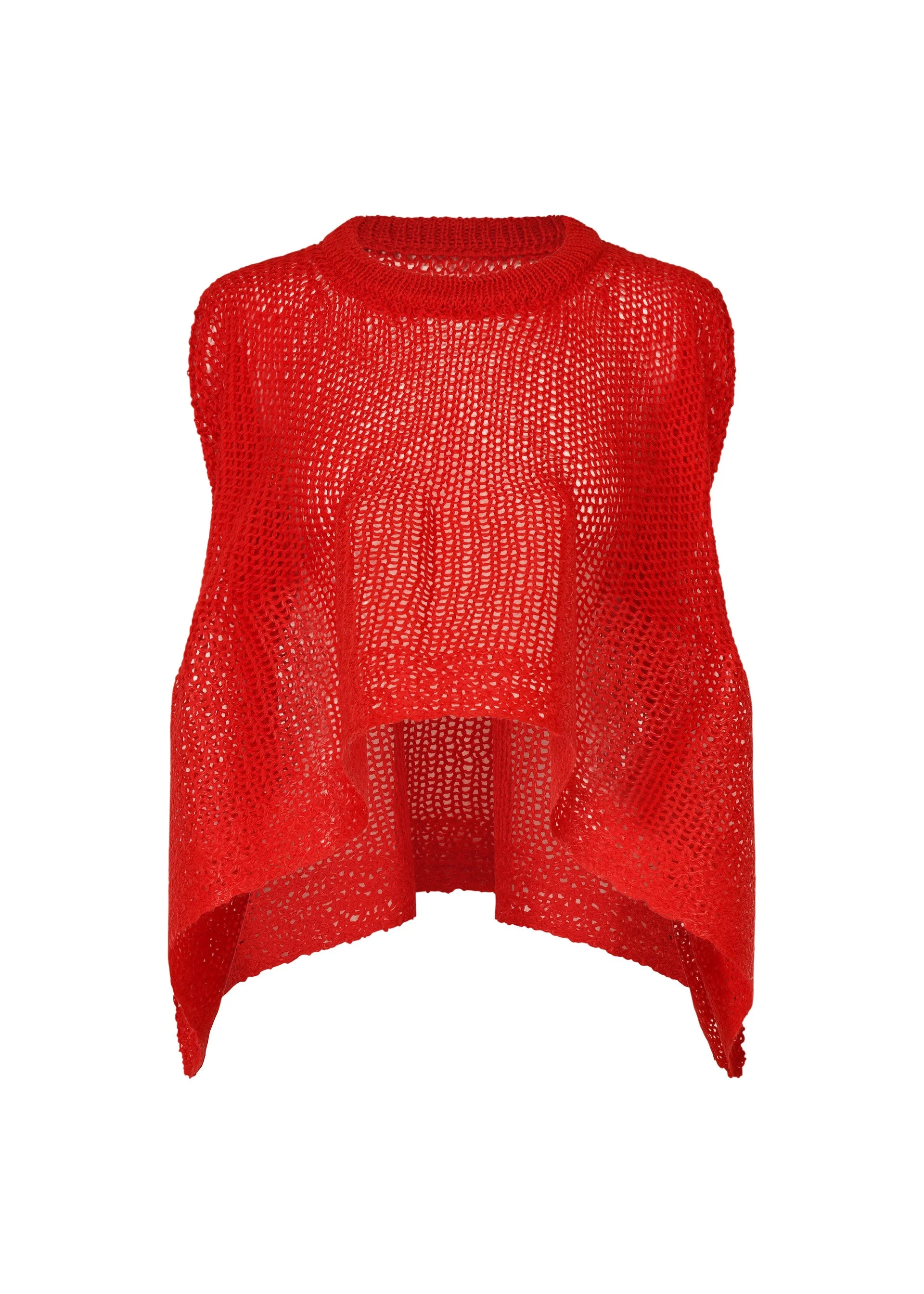This knit top is characterized by its dynamic silhouette created through partial flat pressing. By pressing thermoplastic synthetic fibers with a wool and alpaca blend yarn, a crisp, rigid texture and subtle sheen not typically found in knitwear are achieved. Similar to sandwiching fillings in a panini, a mold is placed inside the garment during pressing, and the edges where nothing is sandwiched are firmly fused as the knit fabric meets. Due to the manufacturing process and characteristics of the material, the texture and fit vary from item to item. Please note this in advance. Product Information Material: 62% wool, 27% alpaca, 11% polyester. Made in Japan. Neckline / Collar:crew neck
